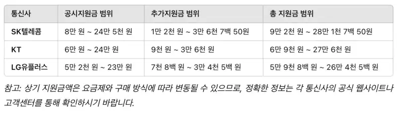 - 공시지원금: 통신사가 스마트폰 구매 시 단말기 가격의 일부를 지원해주는 금액으로, 요금제에 따라 지원금액이 다릅니다. 이 금액은 통신사별로 공시되며, 소비자는 이를 통해 단말기 구매 비용을 절감할 수 있습니다.