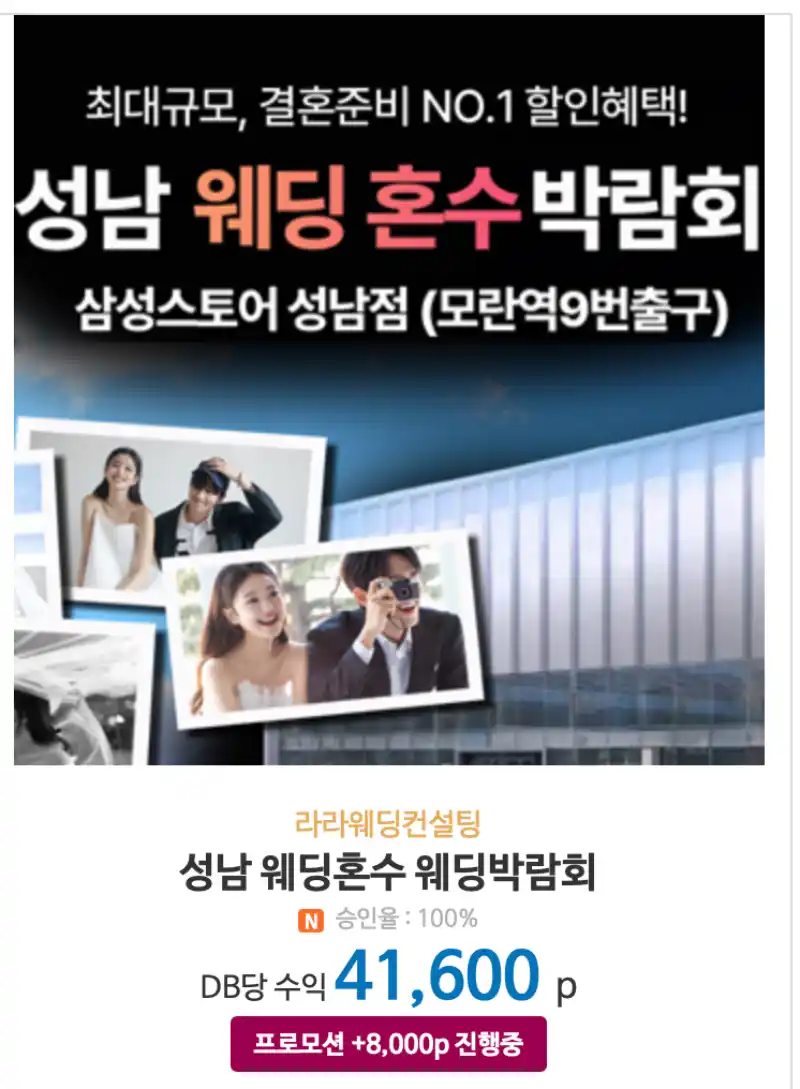 단순한 클릭만이 아니라 행동으로 이어져야하기 때문에 전환율은 낮지만, 그만큼 건당 수익금액이 2만원-5만원정도로 높아 도전해보기 좋은 수익화방법입니다.