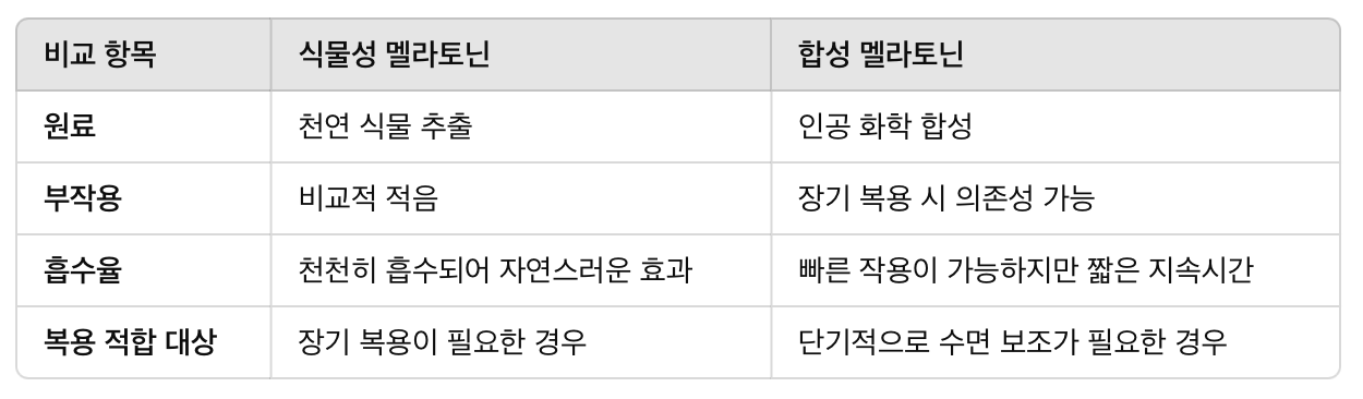 👉 단기적으로 빠른 수면 유도가 필요하다면 합성 멜라토닌이 유용하지만, 장기적인 건강을 고려한다면 식물성 멜라토닌이 더 좋은 선택입니다.